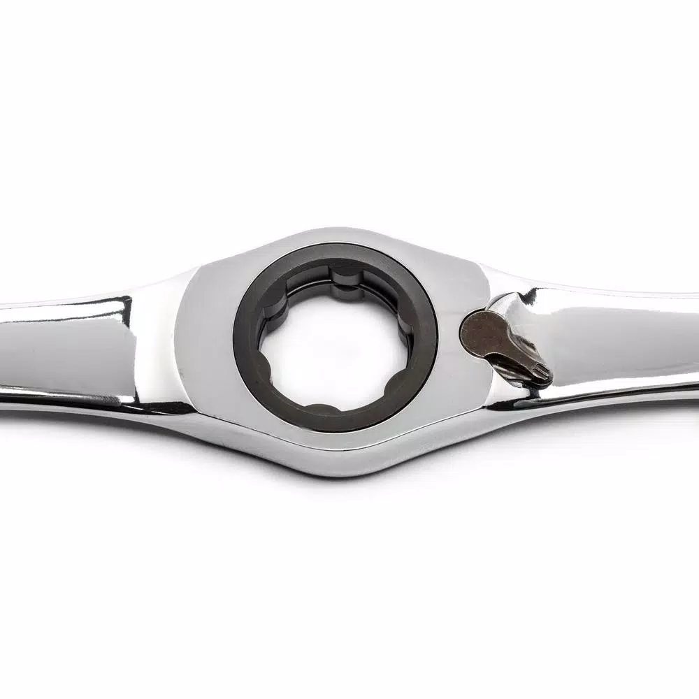 - 5° ratcheting arc with reversible lever eliminates hand over hand turning