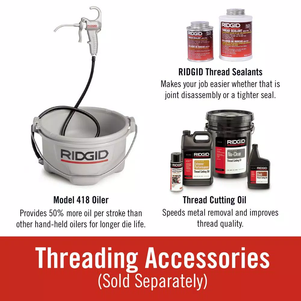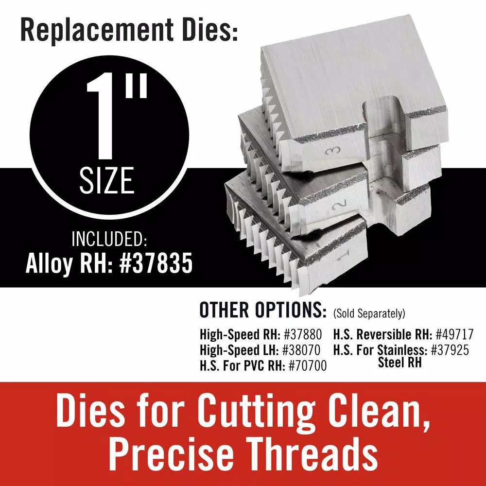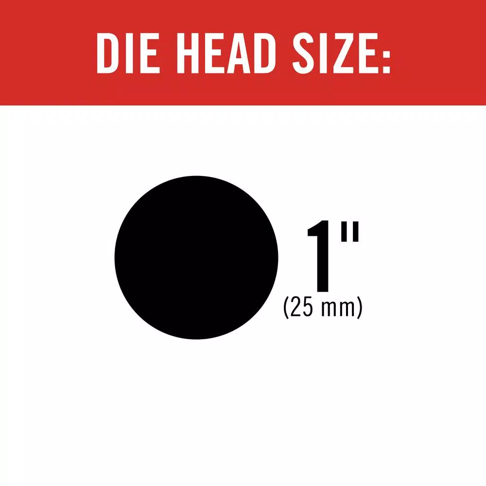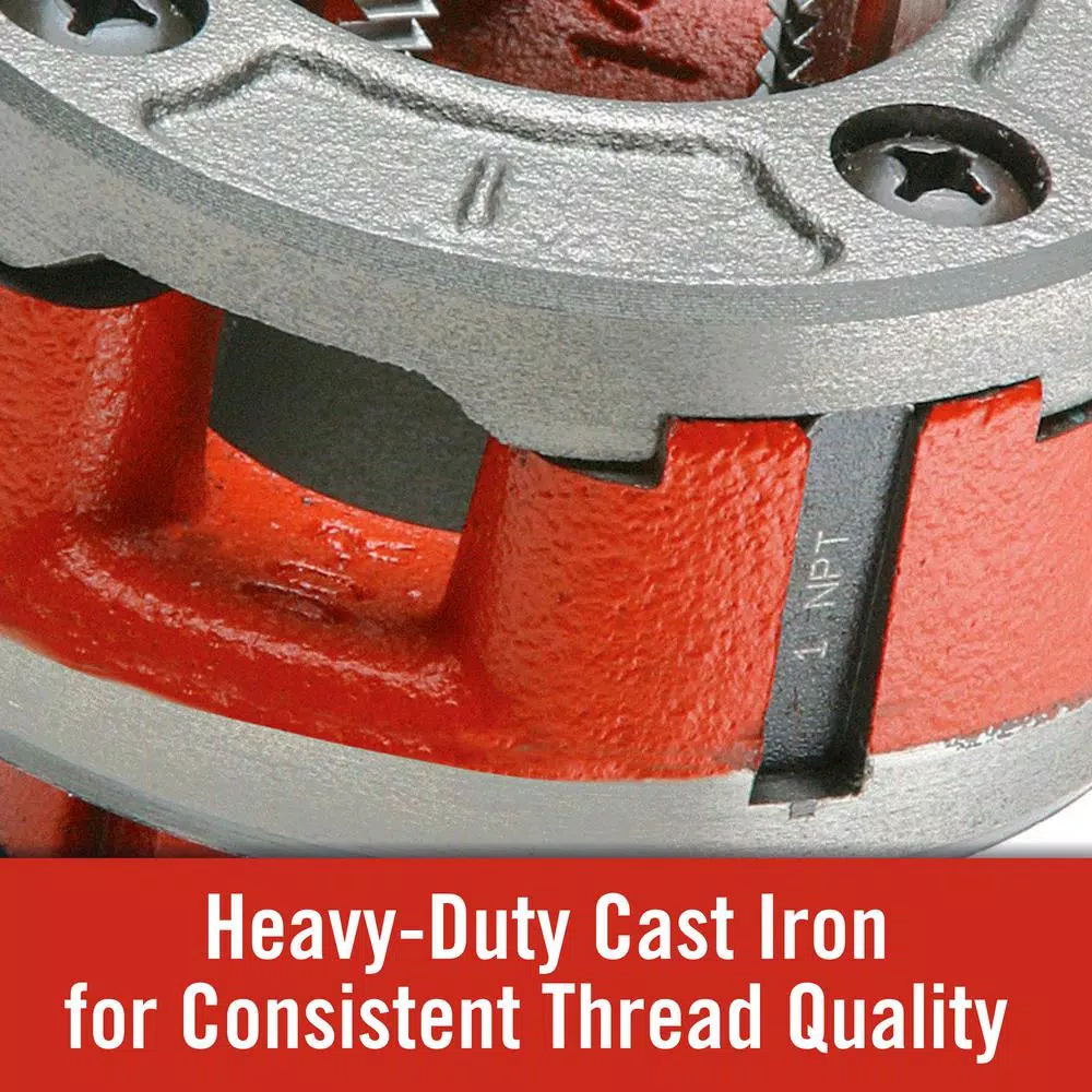 - Manual alloy die head includes 1 in. dies for clean, accurate threading